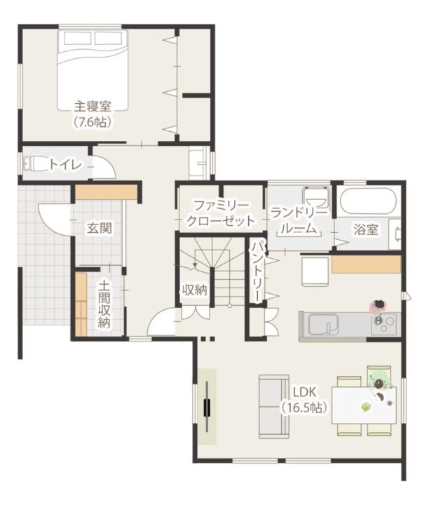 家事動線が短いため、家事の効率化を実現できる間取りです。