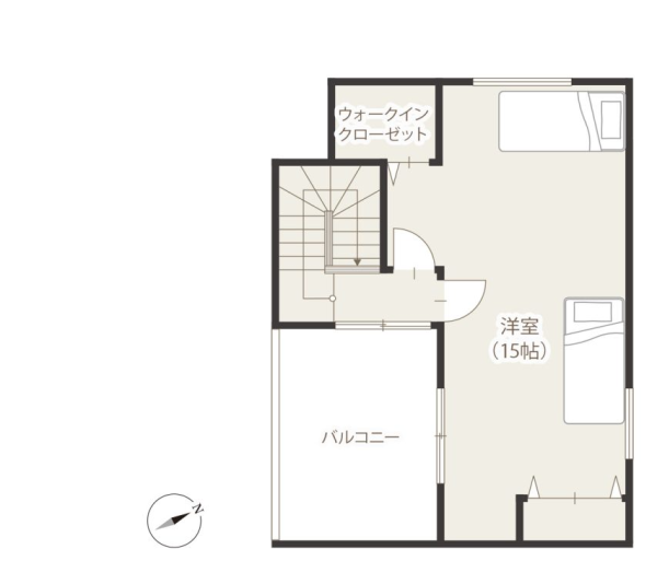 間取り例③:ランドリールームとファミクロが隣接している1.5階建ての平屋