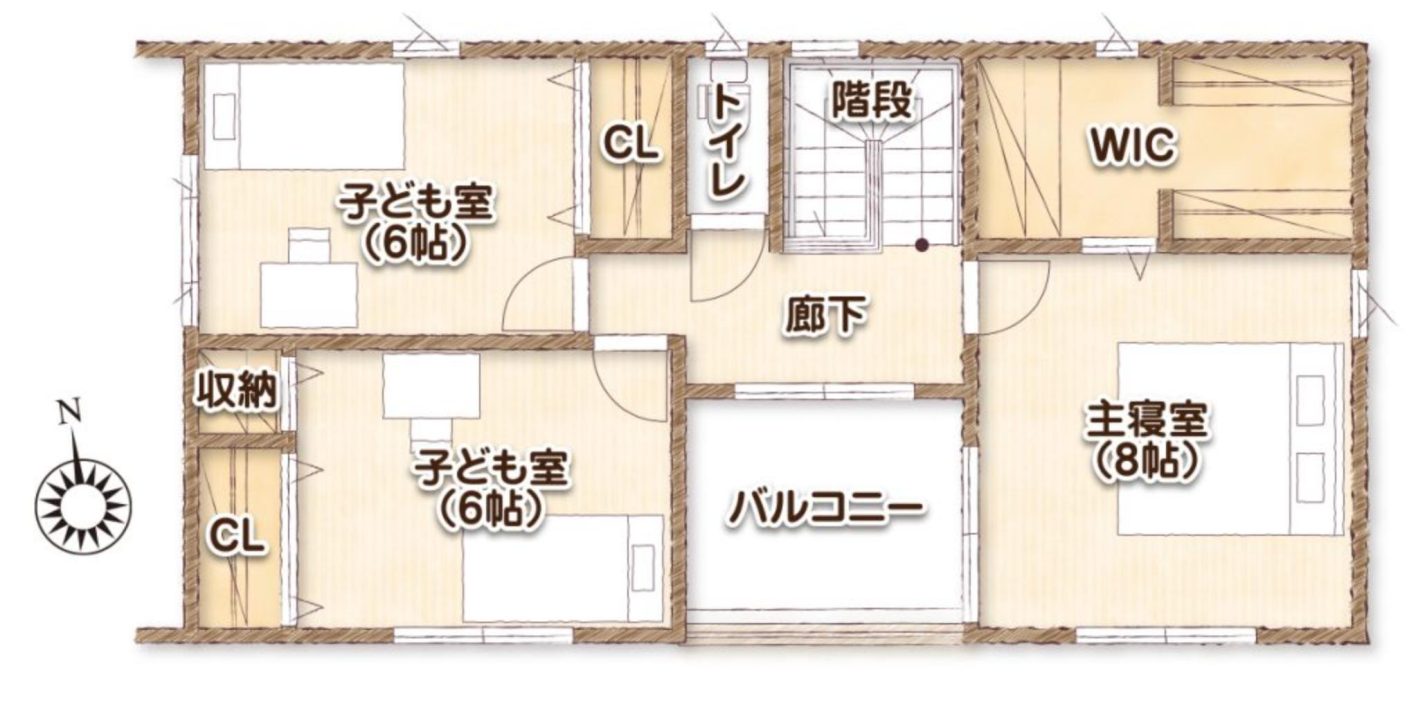 子ども部屋にクローゼット、主寝室にウォークインクローゼットを設置しているので、将来的にも収納不足になる心配もありません。
