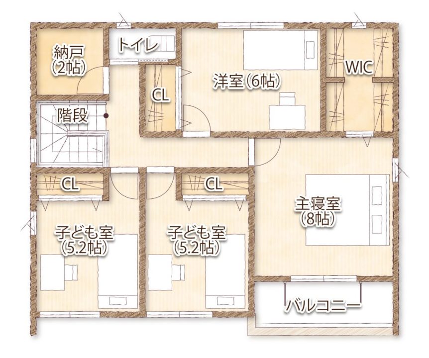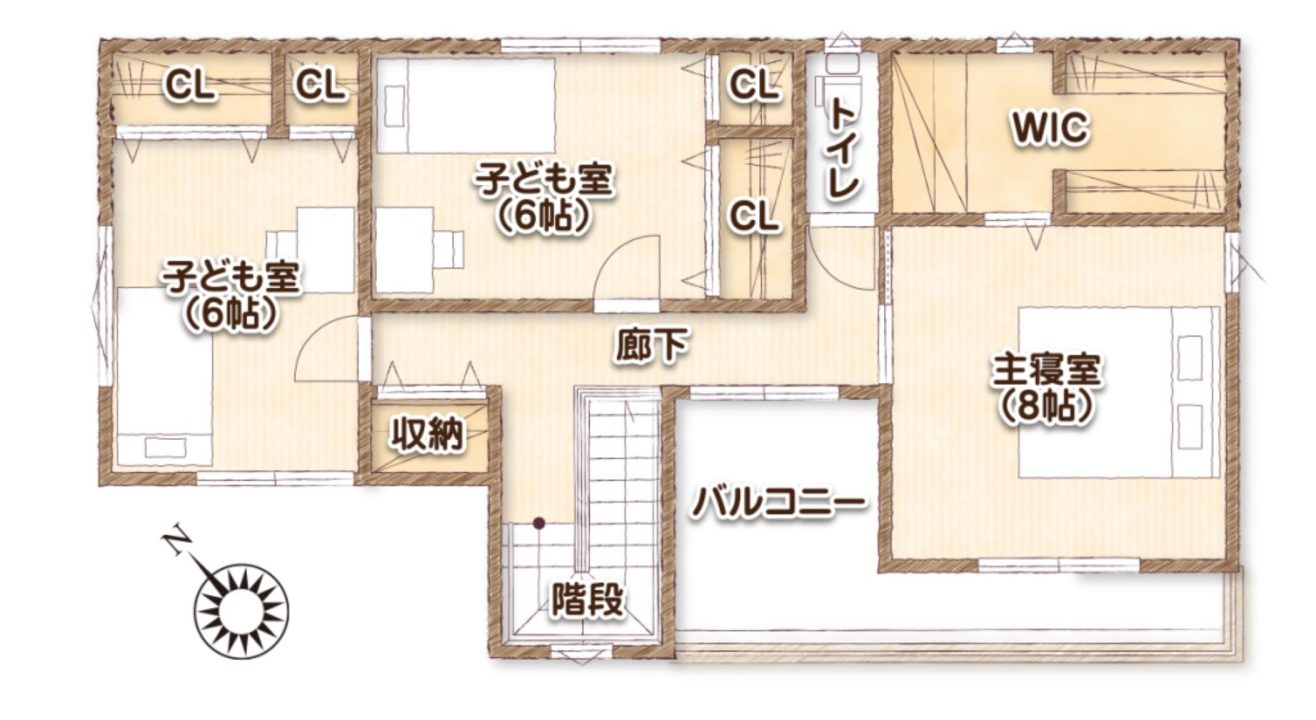 2. 2階の各部屋にクローゼットが設けられている