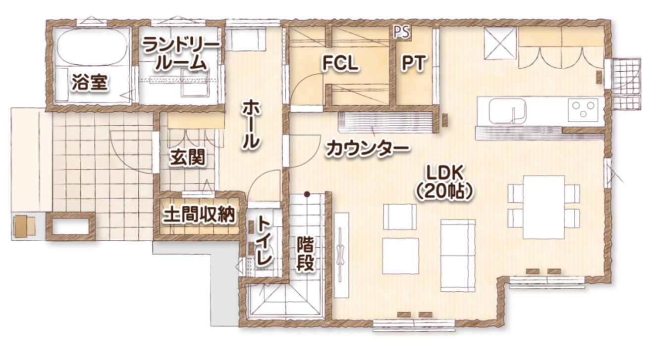 事例②:【坪単価60万円台】20帖の広々としたリビングが魅力の家