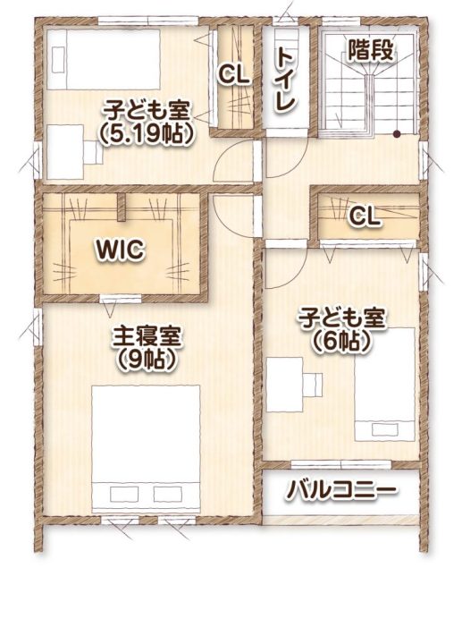 2階にもクローゼットが配置されており、各自の荷物を整理整頓できる習慣を身につけられます。