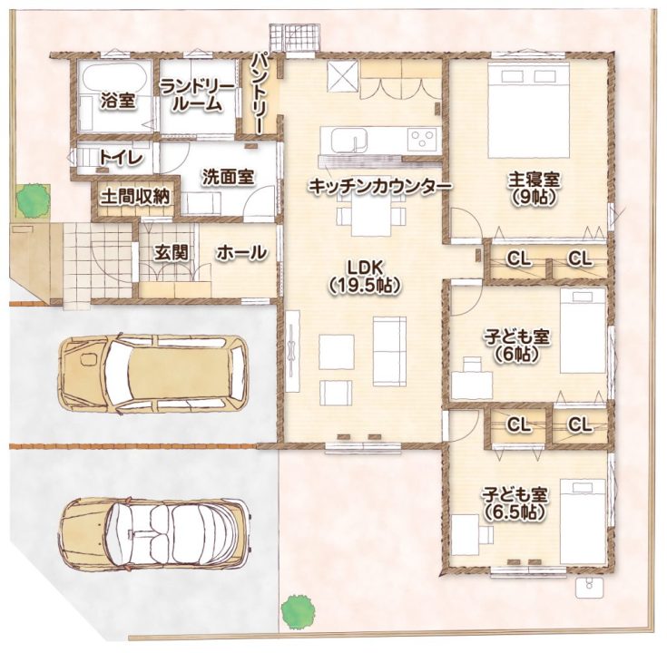 また、こちらの間取りは家事動線にもこだわっており、浴室やランドリールーム、キッチンが近くにあります。