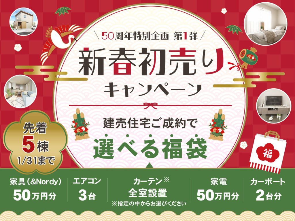 1月31日までの建売住宅ご成約で\先着5棟!選べる福袋/