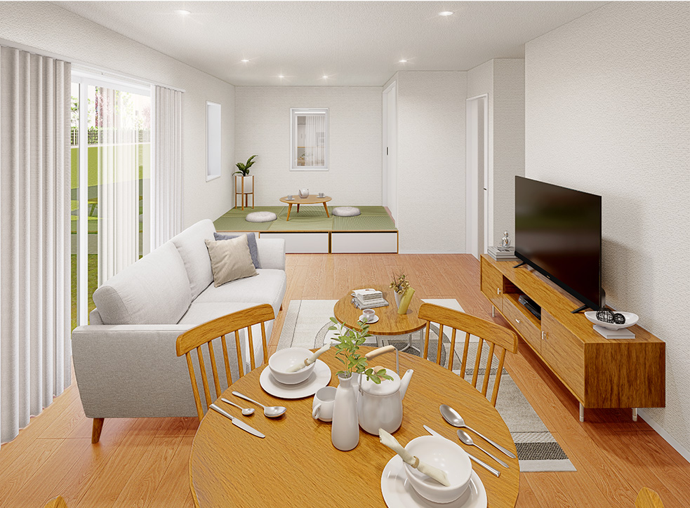 柔らかな畳の上は、お子さまたちのお昼寝や遊び場として大活躍!リビングに隣接しているので、見守りながら家事もできます。