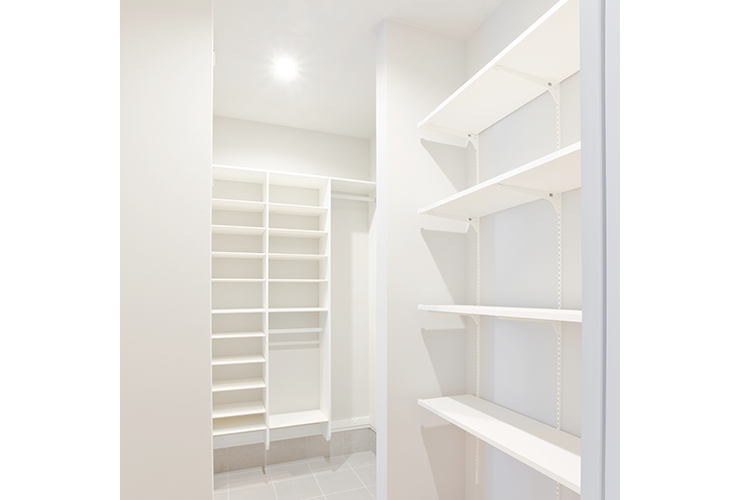 週末のまとめ買いOKの大容量のパントリー。物があふれることなく、いつもすっきりキレイな空間を保てます。