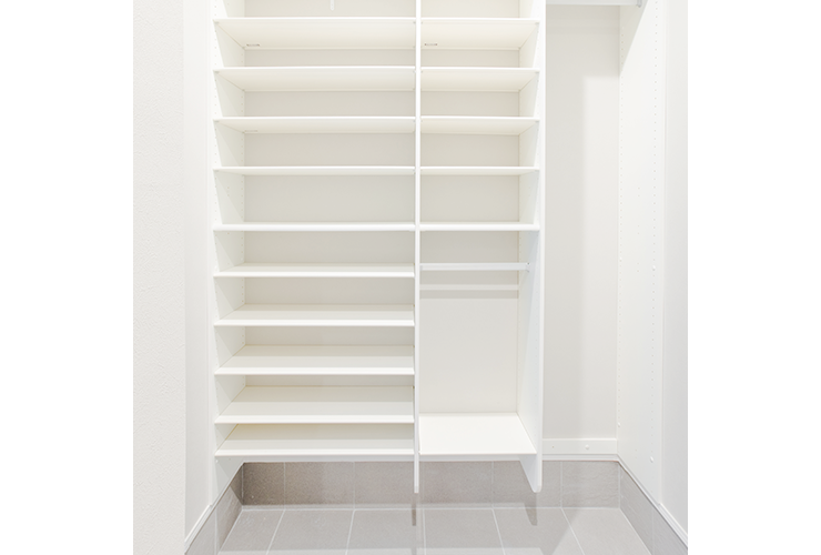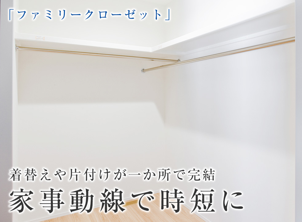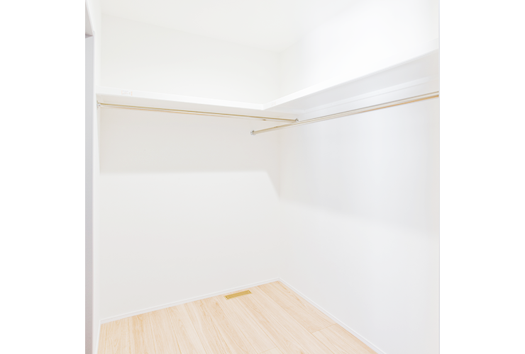家族全員の衣類を1箇所にまとめて収納できる便利なクローゼット。ランドリールームに隣接しているため、洗濯を取り込んだ後の片付け作業もラクラク!