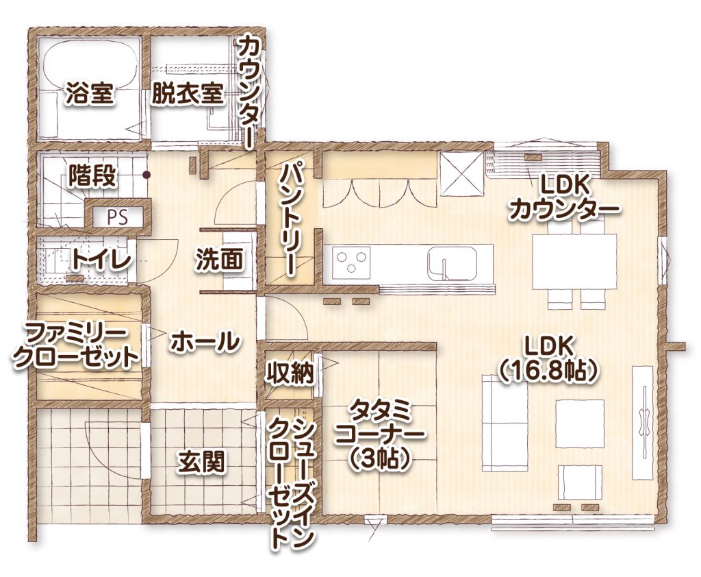 柔らかな畳の上は、お子さまたちのお昼寝や遊び場として大活躍!リビングに隣接しているので、見守りながら家事もできます。