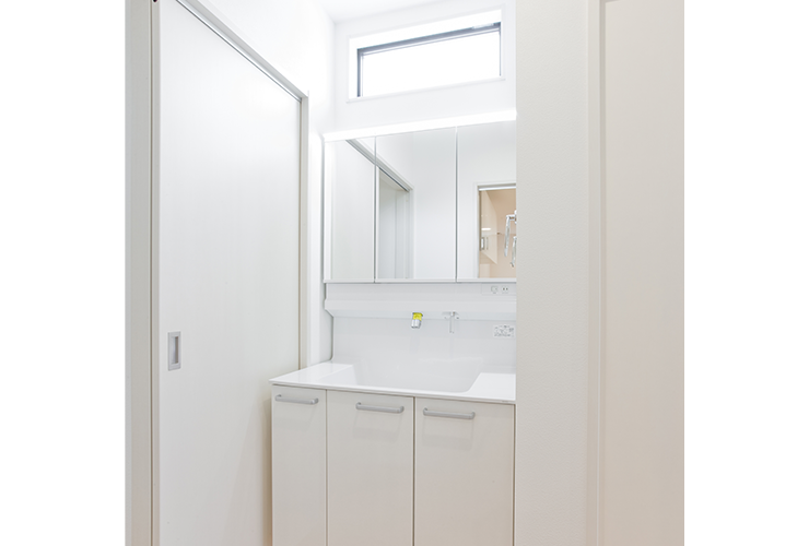 日用品を効率的に収納できる棚や収納スペースを確保。整理整頓しやすく、すっきりとした空間を維持できます。