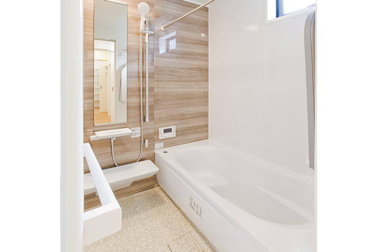 ゆったりとした浴槽で一日の疲れをしっかり癒せます。汚れがつきにくい素材や、排水・換気がスムーズな設計で毎日のお手入れもラクラク。