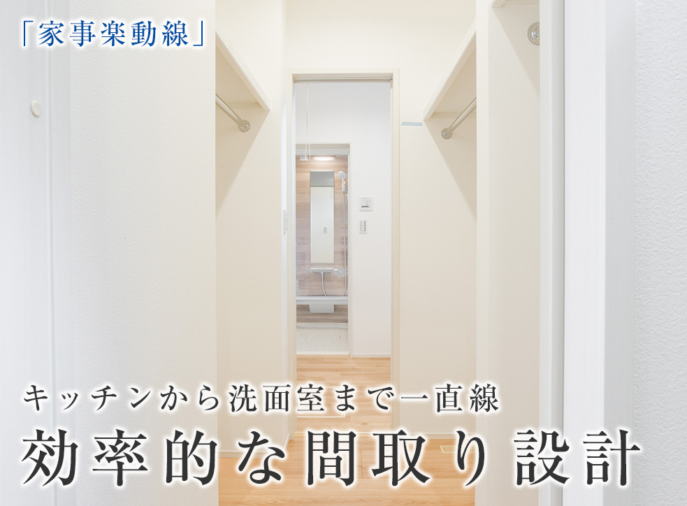 洗濯から干す、取り込む、畳むまでの一連の作業を一室で完結できるランドリールームを設置。ファミリークローゼットと隣接しているので、洗濯物の移動がスムーズです。