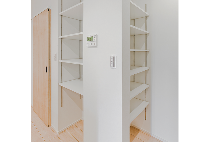 週末のまとめ買いOKの大容量のパントリー。物があふれることなく、いつもすっきりキレイな空間を保てます。