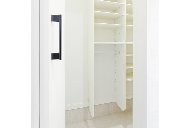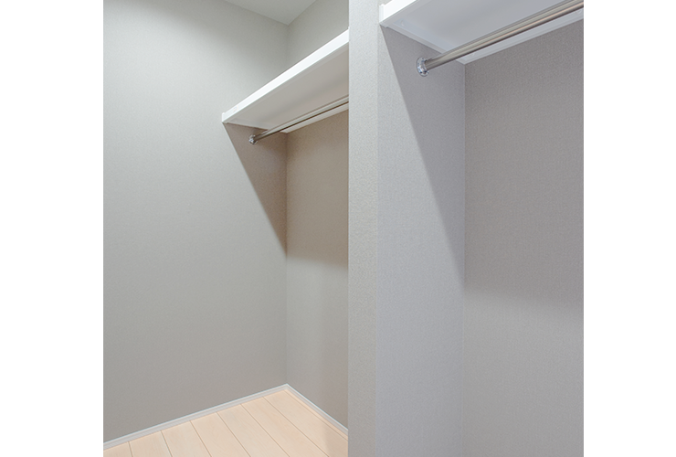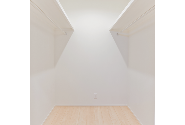 家族全員の衣類を1箇所にまとめて収納できる便利なクローゼット。ランドリールームに隣接しているため、洗濯を取り込んだ後の片付け作業もラクラク!