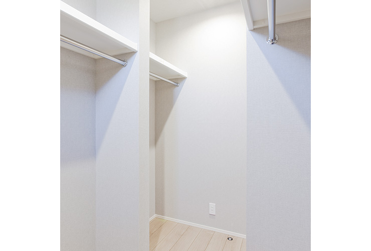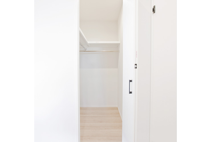 家族全員の衣類を1箇所にまとめて収納できる便利なクローゼット。ランドリールームに隣接しているため、洗濯を取り込んだ後の片付け作業もラクラク!