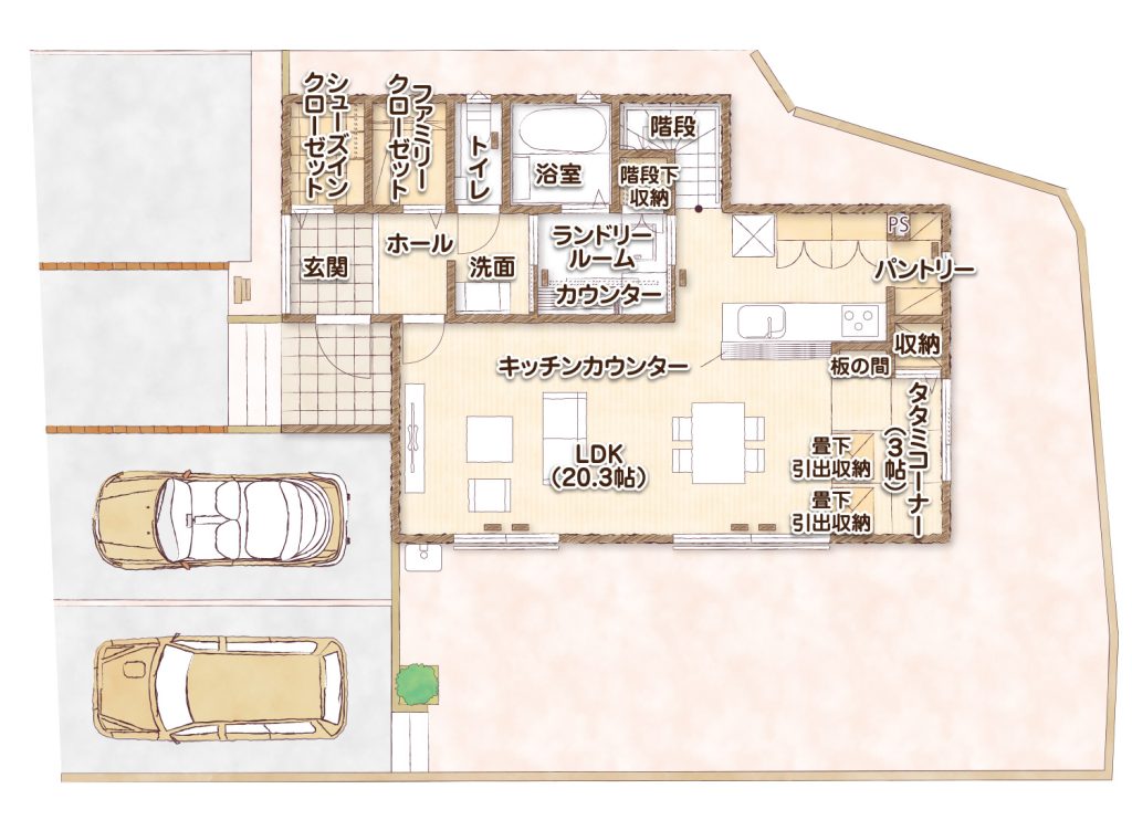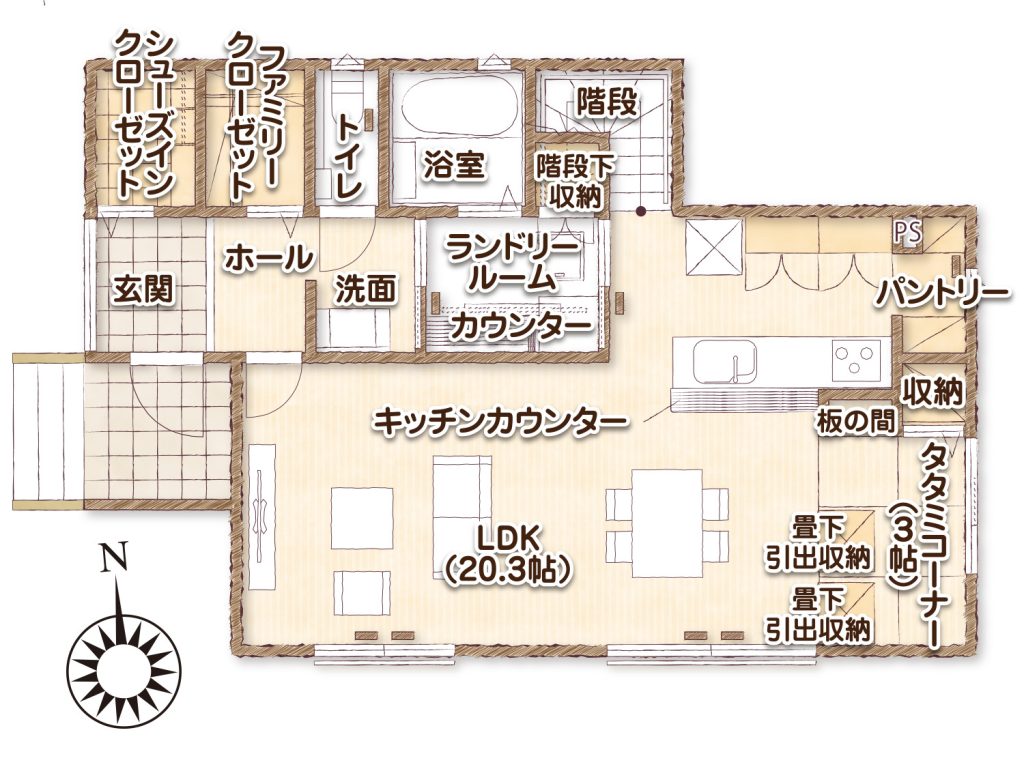 洗濯まわりの作業を行うスペースを設けることで、「洗う、干す、取り込む、アイロンがけ、畳む」作業を一室で連動して行うことが可能になります。