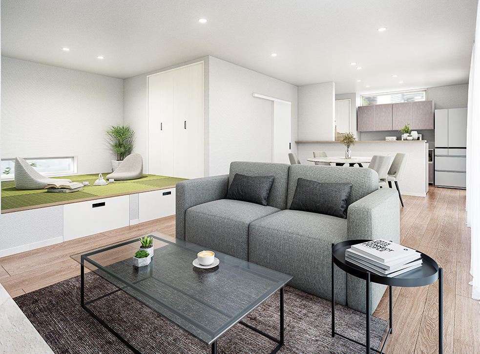 柔らかな畳の上は、お子さまたちのお昼寝や遊び場として大活躍!リビングに隣接しているので、見守りながら家事もできます。