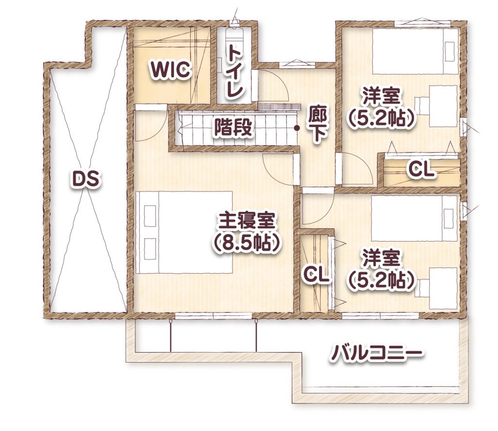 衣類を目的別や季節ごとに分けられる大きさのクローゼットで、衣替えも必要なく、衣類の管理が楽ちん。