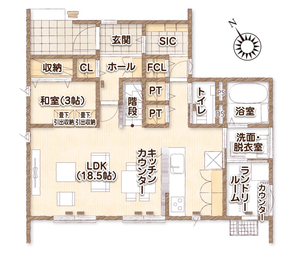高気密・高断熱仕様で、年中快適な室内環境を実現。省エネで家計にもやさしい住まいです。さらに、全棟で気密測定を実施しており、確かな性能を確認済みです。