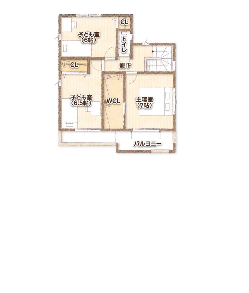24mm厚の構造用合板で1階、2階の床を面構造にすることで地震に対する強さ、構造の安定感がさらに強くなっています。