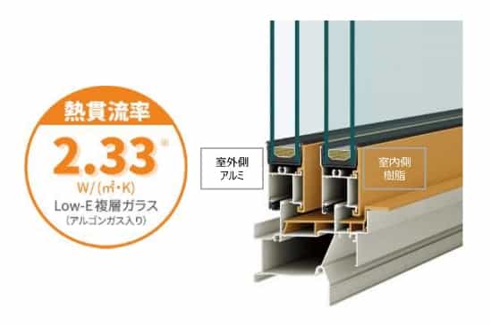 外側ガラスにLow-E金属コーティングを施しているので断熱性能が向上。