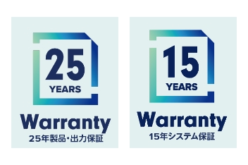 25年の製品・出力保証と15年のシステム保証で、長く安心です。